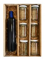 Stellen Sie Ihre eigene Geschenkbox mit 1 Flasche und 6 Gläsern zusammen.